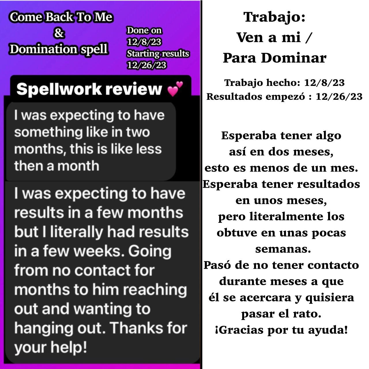 Los trabajos de hechizos no se pueden garantizar debido a múltiples factores que dependen de las especificaciones del cliente.