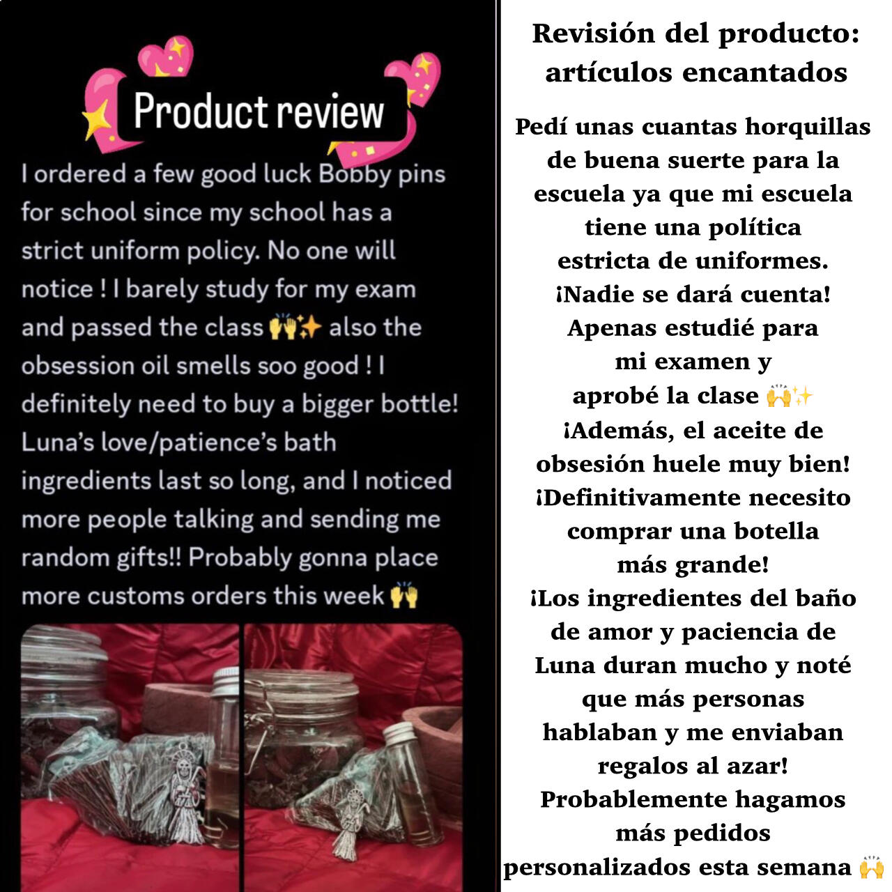 Obsesión- ¡Aceite de dominación para obsesionarlos! Ten cuidado, contiene feromonas, así que llamarás la atención.